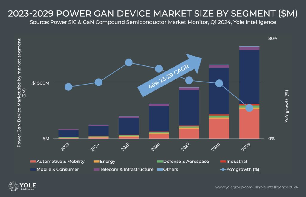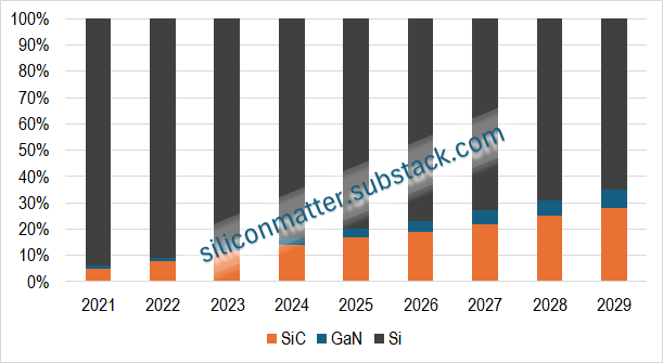 Below is a chart that visualizes the total power device market, split by material (Silicon Carbide, Gallium Nitride and Silicon).